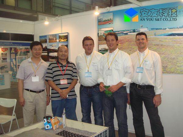 圖為上海市建筑材料行業協會建筑綠化分會全體成員合影 圖為公司在武漢科技局邀請做演講 圖為安友科技有限公司成員與日本著名建筑設計師三谷幸司教授合影 圖為公司領導與歐洲最大屋頂綠化供應商Semper Green公司領導合影 圖為國內最早最大墻面綠化工程 圖為昆明市立交段高架橋綠化工程 公司主辦第四屆國際建筑綠化論壇會