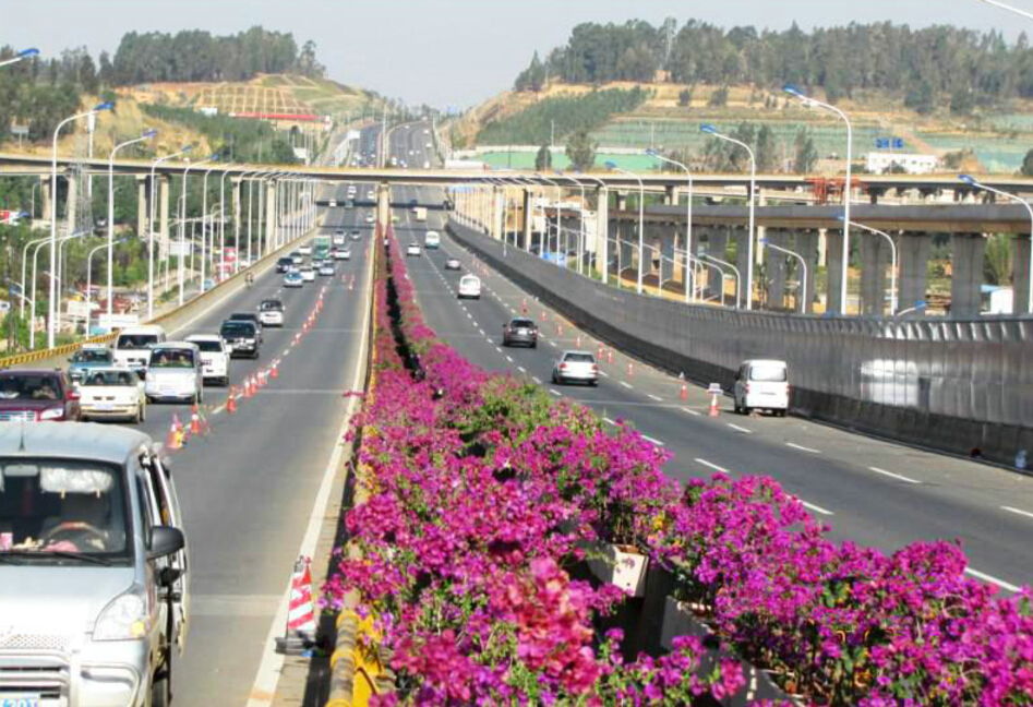 主要運用于高架橋、人行天橋垂直綠化、建筑物墻面和陽臺垂直綠化、河道綠化等。高架橋垂直綠化采用輕質蓄水循環一體 化系統,該系統具有自動灌溉、集中排水等功能。所用種植容器具有蓄水、保溫隔熱功能,采用新型材料,具有重量輕、耐老化、使用壽命長,環保、造型美觀等特點。懸掛系統結構簡單、牢固、重量輕、耐銹蝕。采用隱藏式安裝,與橋梁結合緊密、達到整體景觀效果。