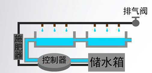 詳細構成:①編程控制器 ②過濾器 ③施肥器 ④電磁閥 ⑤壓力補償滴頭 ⑥供水管道 ⑦各類回路閥門。