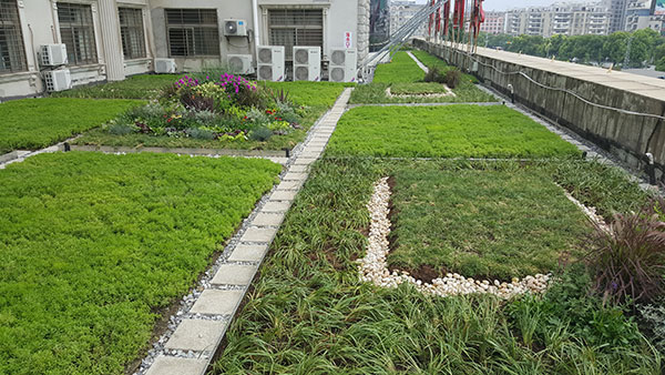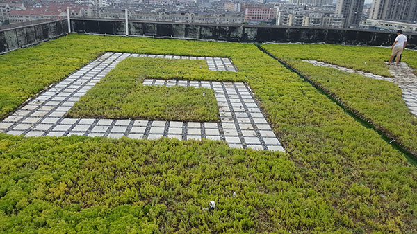屋頂綠化完成后,四季常青,具有良好的觀賞和美化效果,能夠阻隔紫外線對屋頂防水的破壞,降低城市熱島效應(yīng),吸收粉塵及其大氣污染物,阻擊PM2.5污染、降低城市噪音、增加負(fù)氧離子。